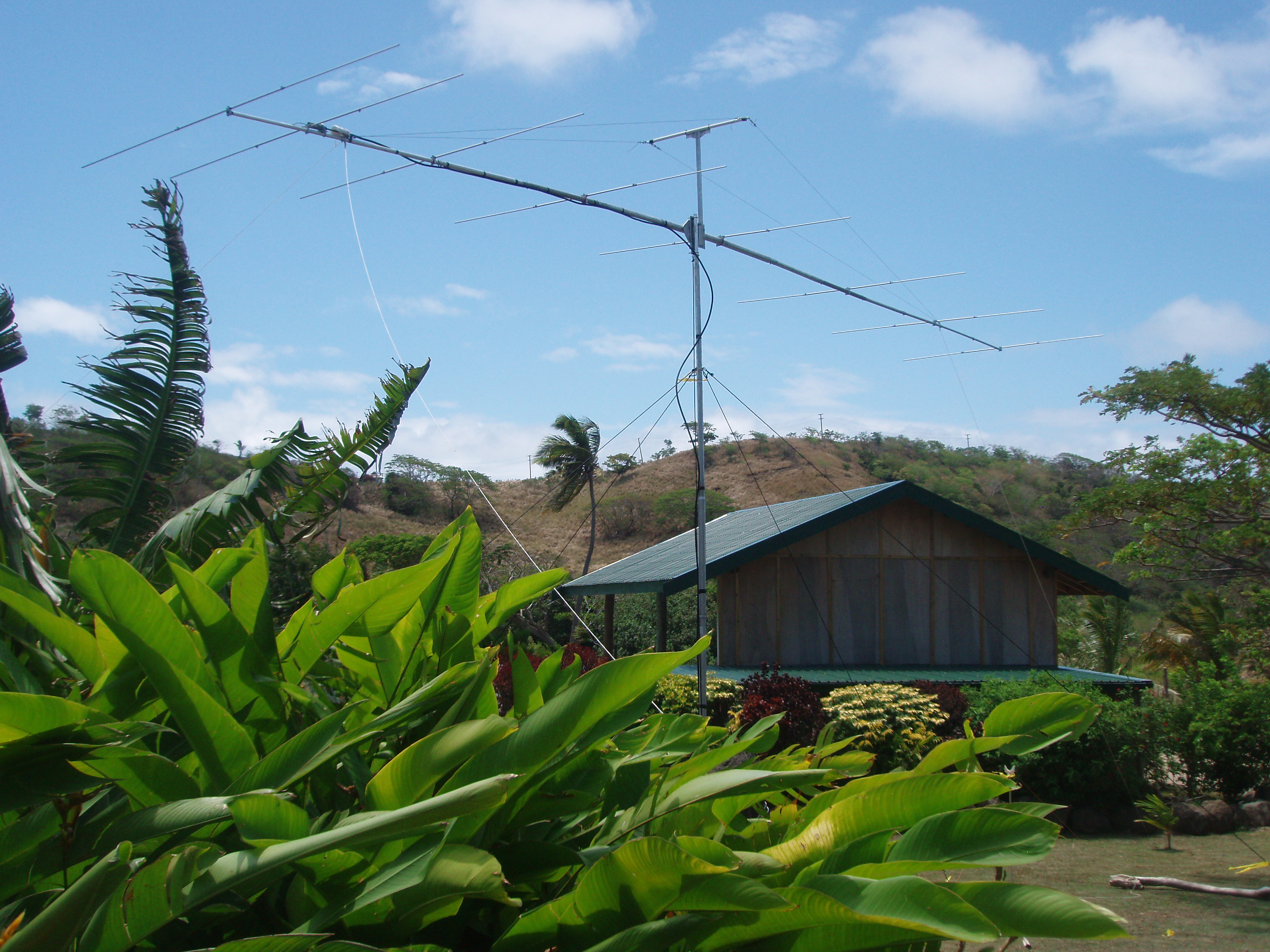 The QTH was "Sega Na Leqa Retreat", a small resort on the nothernmost point of Viti Levu Island near the town of Rakiraki, Fiji.  The office phone number at Sega Na Leqa is (679) 669-4421.  More information about Sega Na Leqa Retreat can be found on their FACEBOOK page.  This turned out to be an ideal location for 6m operation, because we could not detect any signals from the local Channel 1 TV, which is primarily used in the southern part of the island.  The prevailing trade winds off the ocean provided comforting breezes even on hot days, and also minimized the mosquitoes.