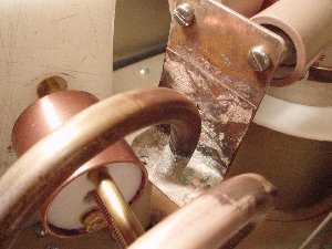 silver soldered to it. A pair of 50 pF blocking capacitors