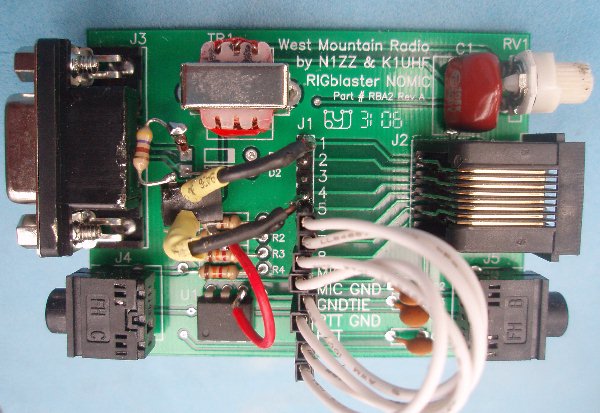 the AUDIO IN on the NOMIC. The only things lacking from my rquirements list were CW keying via the DTR line, and inclusion of TXD, RXD and SIGNAL GROUND directly from the serial port for rig control and firmware upgrades. Both these modifications were easily added inside the unit, and ported to the KX3 through the existing RJ45 connector, as shown in the photos below.