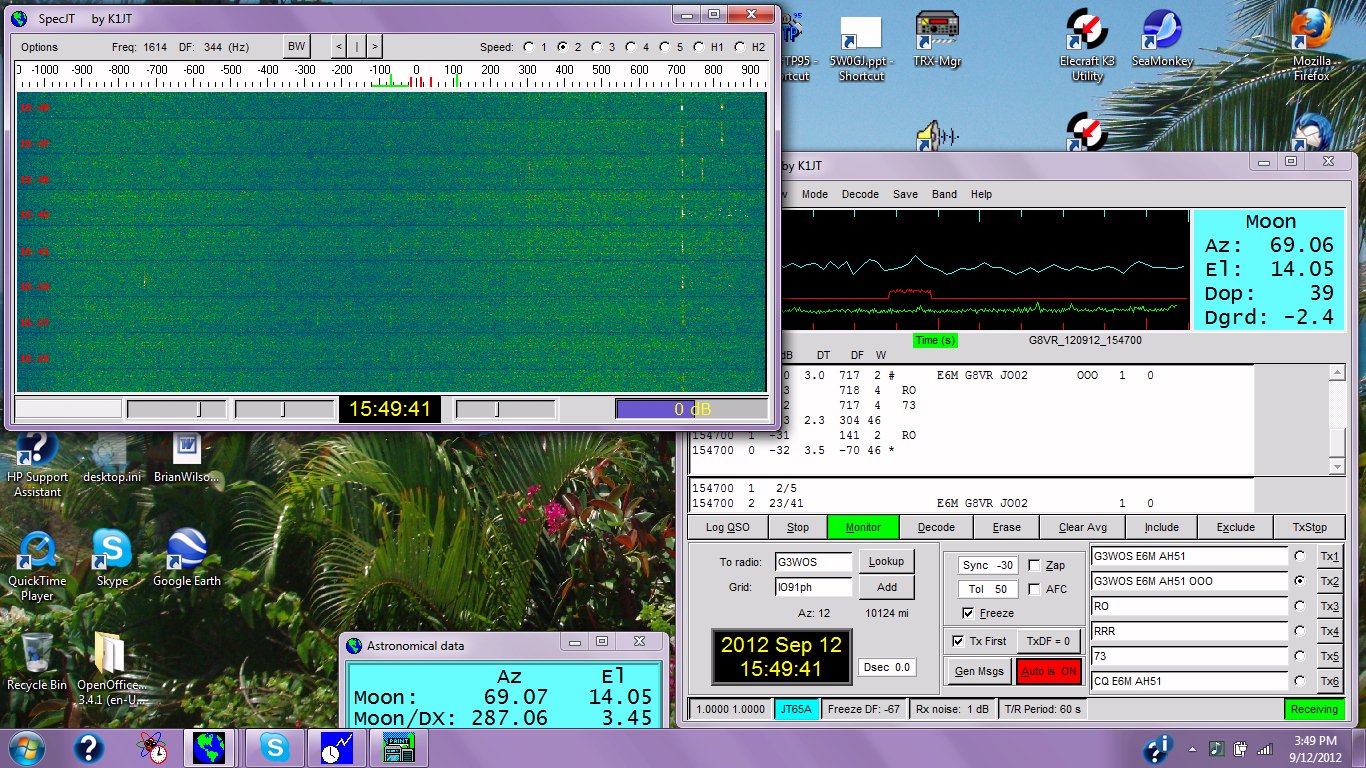 ![]() During my moonrise on12 September, 2012 after my yagi was elevated to 15 degrees |