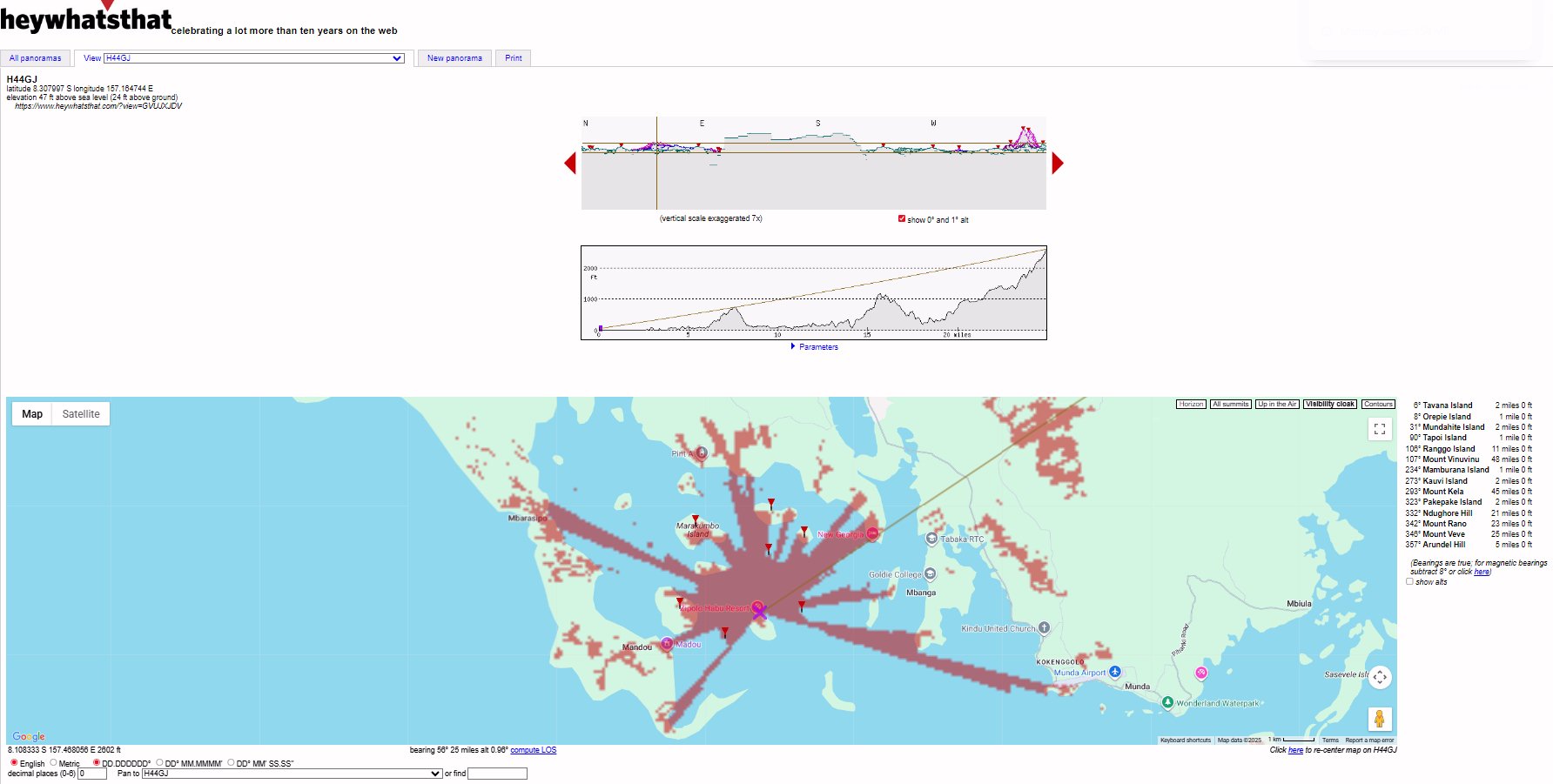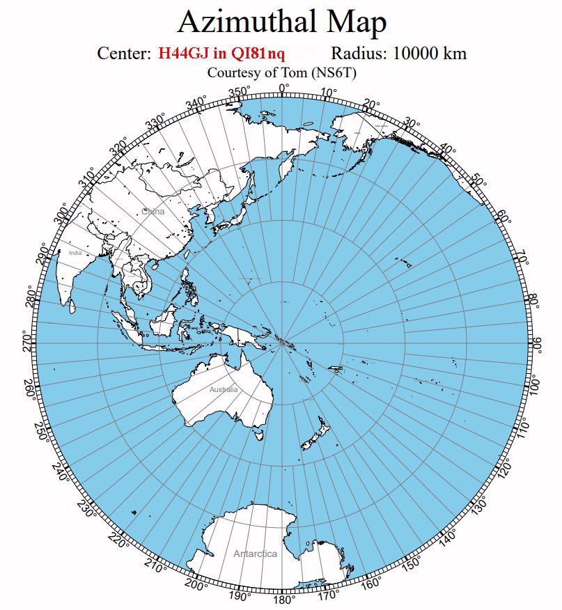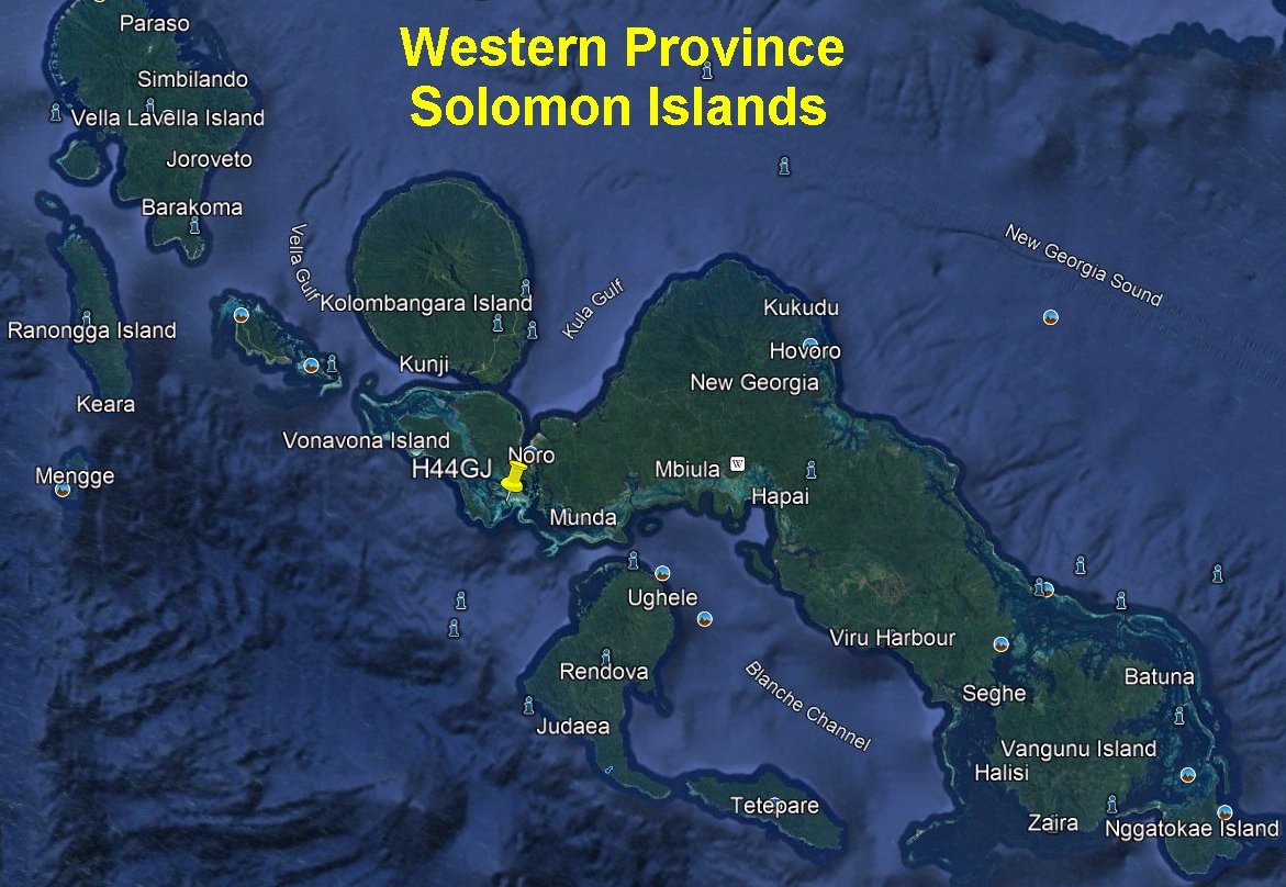 As you know, a good location can mean everything to the success of one of these DXpeditions. Ideally, the site must be quiet, provide enough open space to erect and operate the large antenna and - especially from a location as distant from potential contacts as H44 - must provide a good view of the moon rising and setting. Site selection in tropical regions is often quite difficult due to dense jungle growth. I am hoping this site on the north end of Lola Island will provide a large enough clearing to permit the antenna to be aimed at the moon for common moon windows with stations interested in making contact. Although there will be some buildings toward moonrises and moonsets, the very low horizon might provide adequate clearance for some ground gain lobes in those directions- we will have to see once things are set up. The location on the northwest tip of the island as shown on the map above. The other maps show where in the world this remote place is located. I hope you will make the effort to look for me! ![]()